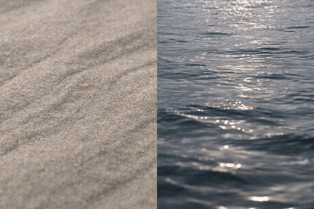 고정되기 전의 순간. 물의 층을 암시하는 색.